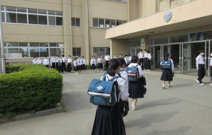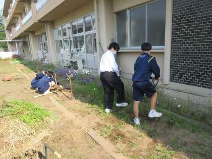 5月26日(木)朝の活動 公開日 2022/05/26 更新日 2022/05/26 今日の西中 今朝は、図書委員会、給食委員会、3年生活委員会の生徒があいさつ運動を行ってくれました。たくさんの生徒が、爽やかな挨拶をしてくれました。 当番にあたっている園芸委員会の生徒は、花壇の整備を進めています。