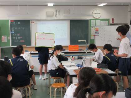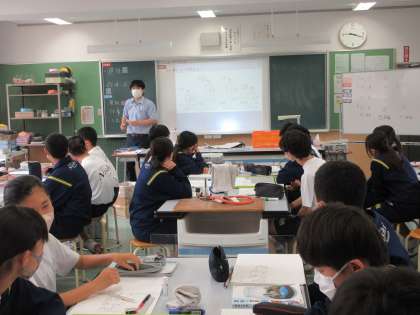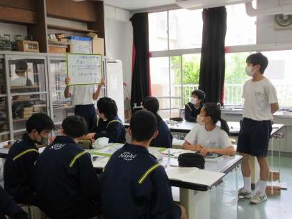 5月26日(木)授業の様子(3年1組理科) 公開日 2022/05/26 更新日 2022/05/26 今日の西中 3年1組は、理科で仕事とエネルギーについて学んでいます。理科で「仕事」とは、どんなことをいうのか、課題を例に考えました。ホワイトボードに班の意見をまとめ、全体で交流しました。