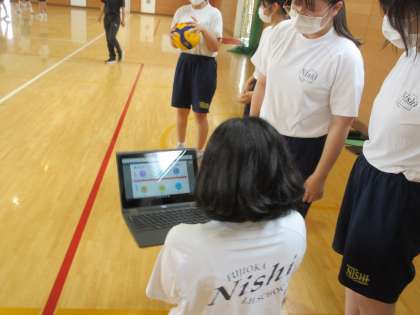 5月26日(木)授業の様子(3年3組保健体育) 公開日 2022/05/26 更新日 2022/05/26 今日の西中 球技大会に向け、練習にも熱が入ってきました。タブレットPCを用いて、ローテーションやポジションの動きを確認して、試合での実践に生かしていました。