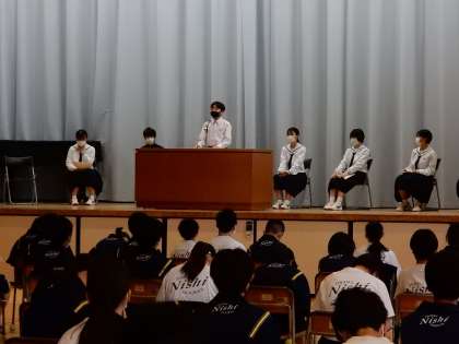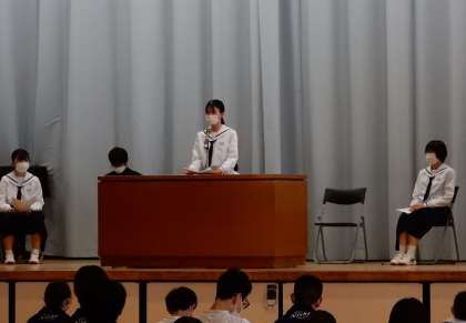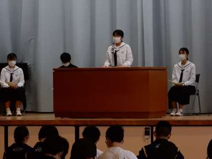 5月26日(木)少年の主張学年大会(2年生) 公開日 2022/05/26 更新日 2022/05/26 今日の西中 5校時、2学年の「少年の主張学年大会」が体育館で開催されました。各学級から選ばれた代表生徒8名が、自分の考えや想いを力強く堂々と訴えかけました。聞いている生徒にとっても、様々なテーマについて深く考える時間となったことと思います。