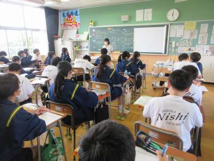 5月27日(金)授業の様子(1年2組家庭科) 公開日 2022/05/27 更新日 2022/05/27 今日の西中 1年2組は、家庭科で衣服について学んでいます。衣服の役割を確認するとともに、TPOを踏まえた衣服のコーディネートについて、意見交流を行いました。