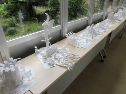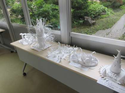 6月 8日(水)見えないものアート 公開日 2022/06/08 更新日 2022/06/08 今日の西中 玄関前に2年生の美術作品「見えないものアート」が展示してあります。今日から1組の作品が展示されました。抱いたイメージを工夫して表現しています。