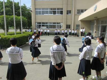 新しい週がスタートしました。生活委員と生徒会本部の生徒が、元気よくあいさつ運動を行いました。
