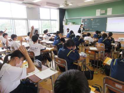 1年1組は、家庭科で被服を学んでいます。これまでは、衣服のコーディネートやTPOについて学習してきました。今日は、衣服を選ぶときの視点について考えました。サイズやデザインは勿論、素材や洗濯方法についても確認する必要があることを学びました。