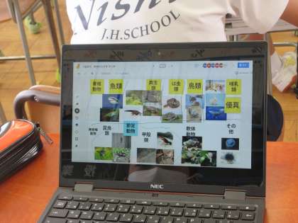 1年3組は、理科で動物のからだのつくりについて学んでいます。今日はテスト対策として、タブレットPCを用いて、様々な観点による分類を行いました。既習事項がしっかり定着しており、手際よく、短時間に分類を行うことができました。