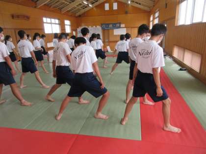 3年2組は、体育で空手道を学んでいます。1、2年生では、剣道を学習してきました。今年度は、新たに空手道を通して、伝統的な文化や行動の仕方を学んでいます。今日は、礼法とや立ち振る舞いの動きを身に付けました。