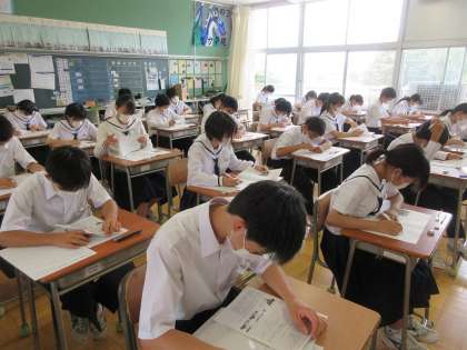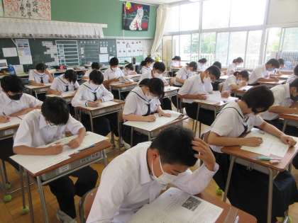 期末テスト1日目、社会のテストの様子です。