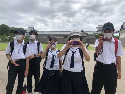 金沢城前で写真の撮り合いっこです。