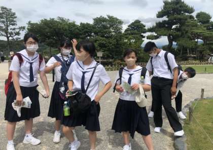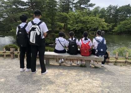 素敵な庭園を見ながらひと休みする班もありました。