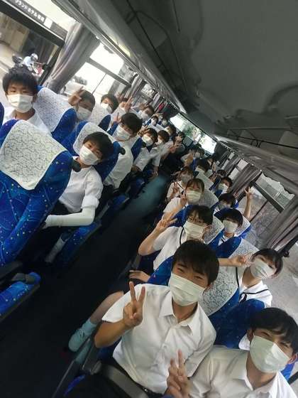 三組バス、全員元気に出発しました。感染対策をしつつバスで福井へ向かいます。
