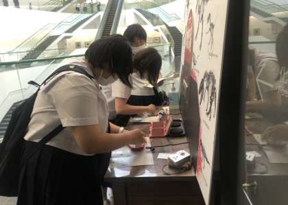 スタンプラリーがあり、記念にスタンプを押す生徒がいました。