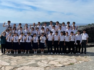 東尋坊に着きました。天気に恵まれ、壮大な景色のもと集合写真が撮影できました。