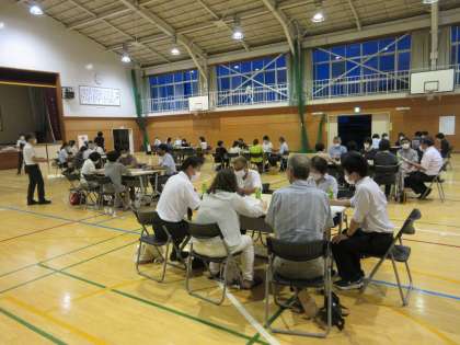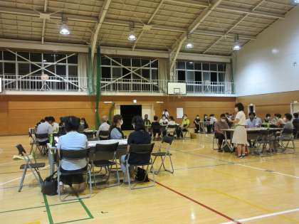 18時30分より西中学校体育館を会場に学校運営協議会主催による「いじめ問題解決に向けた教育懇談会」が開催されました。今年度も感染症予防の為、参加人数を制限して、保護者や地域、諸団体の代表の方、約80人に参加していただきました。