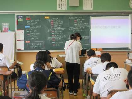 7月 8日(金)授業の様子(1年1組家庭科) 公開日 2022/07/08 更新日 2022/07/08 今日の西中 1年1組は、家庭科で被服について学んでいます。今日は、効果的な衣服の活用法について、意見交換を行いました。衣服の入手、着用、手入れ、収納、点検等の視点で、衣服との効果的な関わり方について考えました。生徒から、たくさん意見がだされていました。