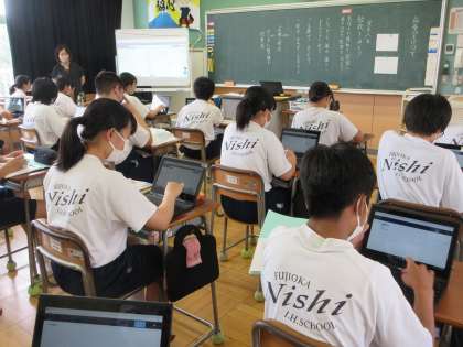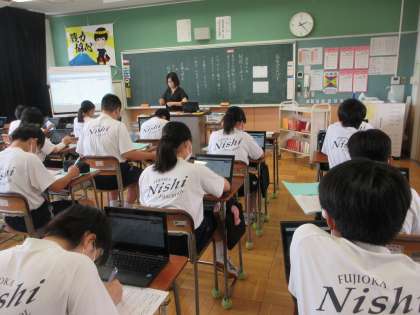 7月 8日(金)授業の様子(2年2組国語) 公開日 2022/07/08 更新日 2022/07/08 今日の西中 2年2組は国語で短歌について学んでいます。今日は、学校や家での生活の気付きや感動を短歌で表現することにチャレンジしました。完成した短歌はタブレットPCでクラスで共有し、感想やコメントを伝え合いました。