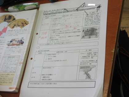 2年2組は、社会で戦国・安土桃山時代について学んでいます。豊臣秀吉が行った政策(刀狩、太閤検地等)の目的や影響について、時代の変化とともに考えました。