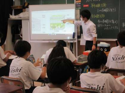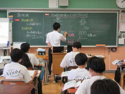 7月15日(金)授業の様子(2年1組理科) 公開日 2022/07/15 更新日 2022/07/15 今日の西中 2年1組は、理科で生物の体のつくりを学んでいます。前時までは、顕微鏡で動植物の細胞を観察してきました。本時は、多細胞生物の体のつくりとはたらきを整理しながら、まとめました。今日の学習は、1学期の理科のまとめにもなったことと思います。