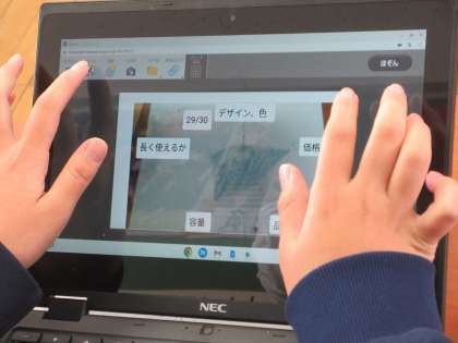 11月17日(木)授業の様子(2年3組家庭科) 公開日 2022/11/17 更新日 2022/11/17 今日の西中 買い物をする際、どんな情報を活用するか、各自レーダーチャートにまとめました。バッグを例に、価格、容量、デザイン、耐久性等についてまとめ、タブレットPCで考えを交流しました。