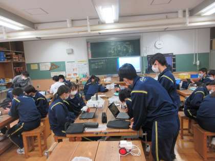 11月17日(木)授業の様子(3年3組技術科) 公開日 2022/11/17 更新日 2022/11/17 今日の西中 3年3組は技術科でプログラミングによる計測・制御を学んでいます。ペアで協力して、キットを制御するプログラムを作成しました。生活の中での制御やこれからの情報技術について関心を持つことができたかと思います。