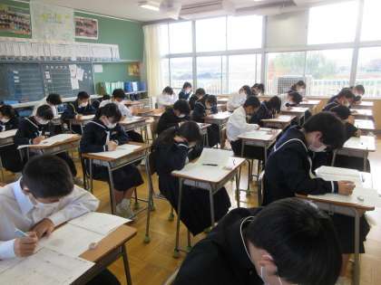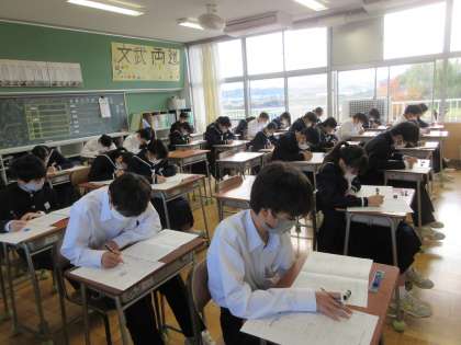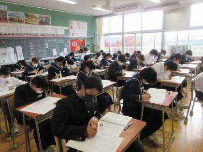 11月21日(月)期末テスト1日目(1年生) 公開日 2022/11/21 更新日 2022/11/21 今日の西中 期末テスト1日は、理科、技術家庭科、英語でした。理科のテストの様子です。テストに向かう緊張感が伝わってきます (上:1組、中:2組、下:3組)