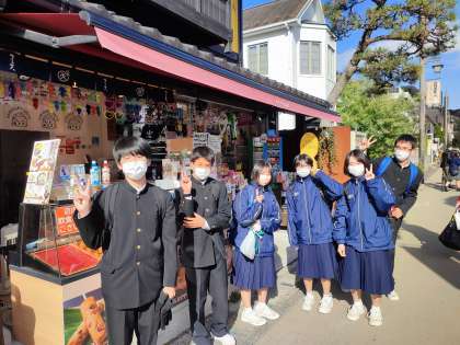 午前中は鶴岡八幡宮や建長寺、明月院等々、自分たちで決めたルートに沿って校外学習に臨んでいました。