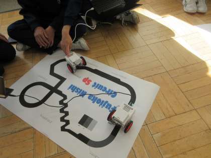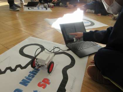 12月12日(月)授業の様子(3年3組技術科) 公開日 2022/12/12 更新日 2022/12/12 今日の西中 プログラミングによる計測・制御の学習を行っています。今日は、センサーに線を意識させて、線に沿って車を走らせるライントレースカーの制作にチャレンジしました。車についた赤外線フォトリフレクタで黒い線を認識します。楽しみながらプログラミングによる問題解決を学んでいます。