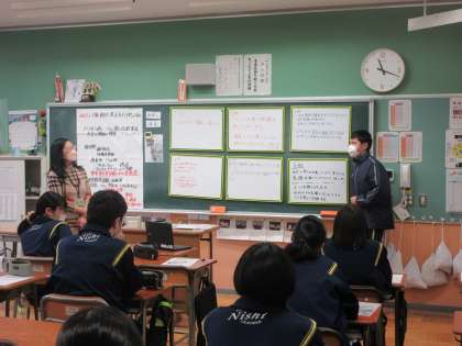 12月13日(火)人権擁護擁護委員さんによる特別授業 公開日 2022/12/13 更新日 2022/12/13 今日の西中 3年生を対象に人権擁護委員による特別授業を行いました。ハンセン病を通して、差別や偏見がなくならないのは何故か考えました。ハンセン病で苦しむ人の実態を聞き、生徒は本音の意見を出し合い、交流を行っていました。(上:2組、中:3組、下:3組)