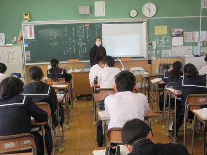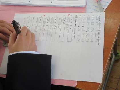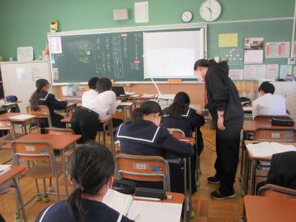 1年3組は国語で漢文を学んでいます。いくつもの漢字が連なっている漢文。送り仮名がついていたり返り点があったり、漢文の基礎を確認し、実際に文章を読んでいきました。