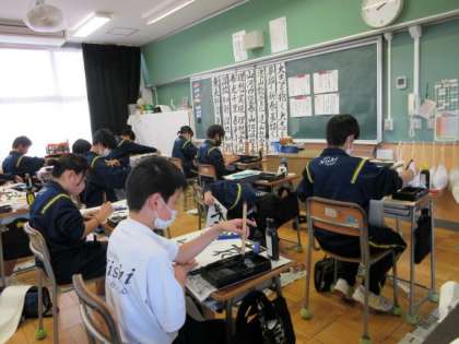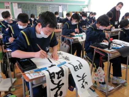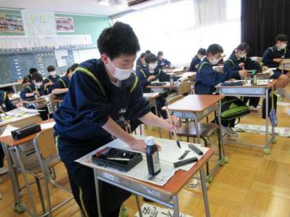 12月14日(水)授業の様子(1年書き初め練習) 公開日 2022/12/14 更新日 2022/12/14 今日の西中 1年生は全クラス、書き初めの練習をしました。いくつかあるお手本の中から自分が書きたい文字を選び、練習です。教わったばかりの行書で書いている人も見受けられました。1月の書き初め大会本番ではきっと素晴らしい作品が展示できると思います。