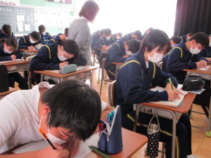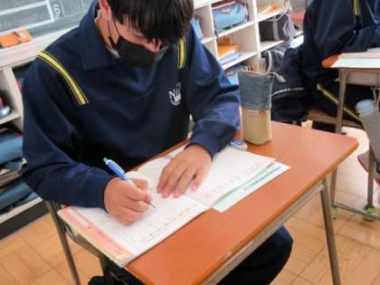 12月16日(金)授業の様子(2年4組国語) 公開日 2022/12/16 更新日 2022/12/16 今日の西中 硬筆で行書の練習をしました。行書の特徴である省略に着目して、みんな丁寧に練習に取り組んでいました。この運筆は次の毛筆学習にも繋がっていきます。