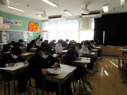 1月11日(水)3年実力テスト、1・2年休み明けテスト 公開日 2023/01/11 更新日 2023/01/11 今日の西中 今日は各学年ともテストの1日でした。 今までの学習内容がどの程度身についているか試すよいチャンスです。みんな真剣に取り組んでいました。 写真上・1年 中・2年 下・3年