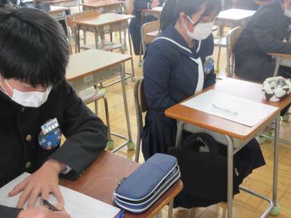 西中では毎月10日を「人権について考える日」として、人権の視点から自分たちの行動を振り返ったり、身の周りを見つめたりしています。今日は後期人権集中学習で西中校区で作成した人権バッチをつけながら、学習を行いました。
