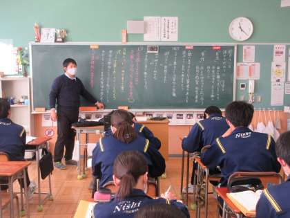 1月18日(水)授業の様子(3年3組国語) 公開日 2023/01/18 更新日 2023/01/18 今日の西中 抽象的な論説文の読解を行っています。教材「誰かの代わりに」を読み、人間の生き方について筆者の考えを読み取り、自分の言葉でまとめました。文章を読み返しながら、筆者の言葉に込められた想いを追究していました。
