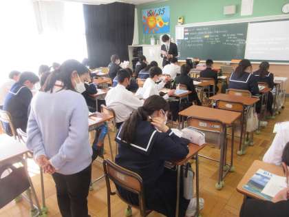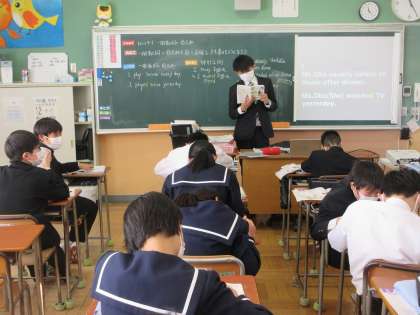 動詞の過去形を用いた文章表現に取り組みました。書くだけではなく、後半は過去形の文章のリスニングを行い、学習内容が定着しているか確認しました。