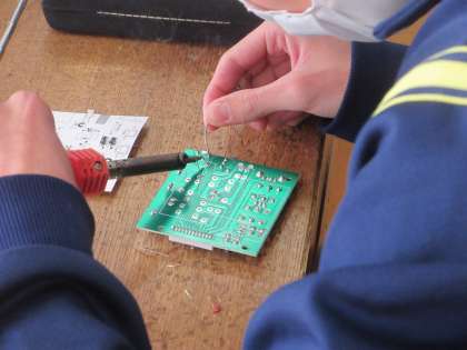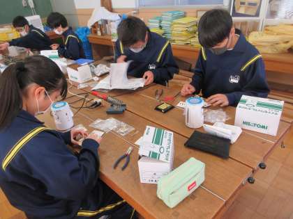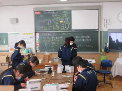 1月19日(木)授業の様子(2年1組技術科) 公開日 2023/01/19 更新日 2023/01/19 今日の西中 ダイナモワイヤレスラジオ(充電式無線ラジオ)を作成しながら、回路について学んでいます。いよいよラジオの組み立てが始まりました。ハンダ付けにも慣れ、部品を上手に基板に固定しています。