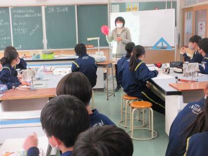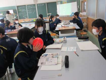 1月19日(木)授業の様子(1年1組理科) 公開日 2023/01/19 更新日 2023/01/19 今日の西中 音についての学習が始まりました。どんな時に音が発生するか確認しました。風船に向けて声を出すと、風船が振動します。