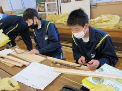 1月20日(金)授業の様子(1年3組技術科) 公開日 2023/01/20 更新日 2023/01/20 今日の西中 木工作品の製作をしています。各自の進度によって、けがきをしたり、木材の切断をしたりしています。生徒はのこぎりの使い方がだいぶ上手になりました。
