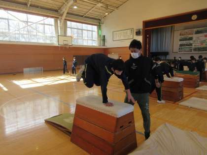 1月20日(金)授業の様子(1年3組体育) 公開日 2023/01/20 更新日 2023/01/20 今日の西中 跳び箱で「抱え込み跳び」にチャレンジしています。教科担当に補助してもらったり、友達にアドバイスをもらったり、タブレットPCで動画記録したり、工夫しながら練習を行い上達しています。