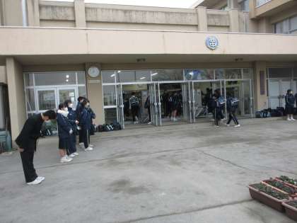 寒い朝でしたが、各学年の学年委員が、元気にあいさつ運動を行いました。