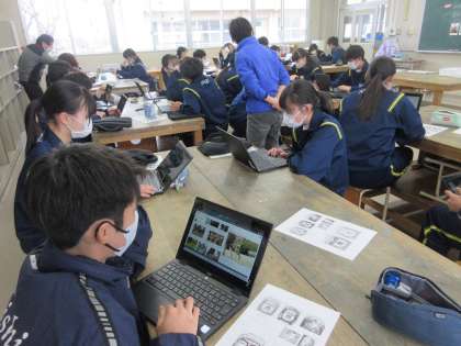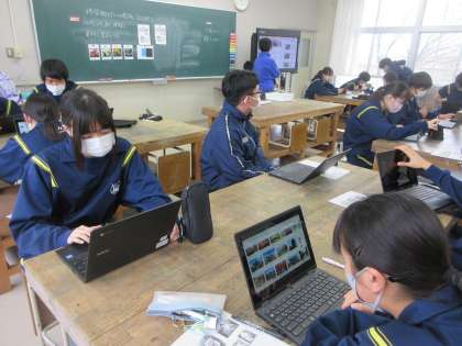 2月13日(月)授業の様子(2年1組美術) 公開日 2023/02/13 更新日 2023/02/13 今日の西中 修学旅行ノート表紙の制作が始まりました。切り絵で旅行先の名所や特産品を表します。今日は、タブレットPCで資料収集を行いました。修学旅行への想いが膨らみます。