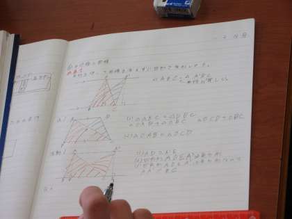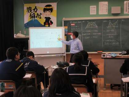 2月13日(月)授業の様子(2年2組数学) 公開日 2023/02/13 更新日 2023/02/13 今日の西中 平行を用いて面積を変えずに図形を変形させています。三角形の面積の公式をもとに、面積が同じ図形を考えました。