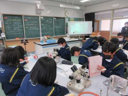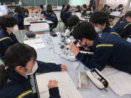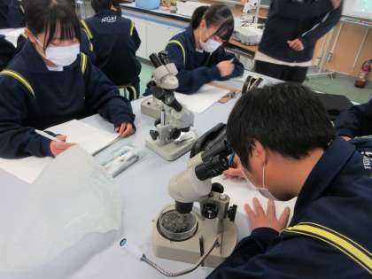 火山灰に含まれる鉱物を調べました。浅間山、昭和新山それぞれの火山灰を蒸発皿に入れ、水で不要物を洗い流します。残った物質を双眼実体顕微鏡で見ると、様々な鉱物を観察することができました。浅間山と昭和新山の火山灰の違いを実感することができたようです。