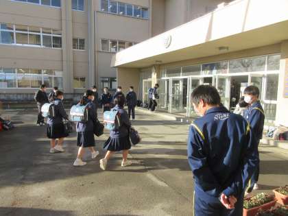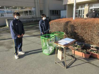2月14日(火)朝の様子 公開日 2023/02/14 更新日 2023/02/14 今日の西中 今朝は、野球部とハンドボール部の生徒が、元気よくあいさつ運動を行いました。JRC委員会は、アルミ缶とプルタブ回収を行いました。次回の回収は16日(木)になります。ご協力よろしくお願いします。