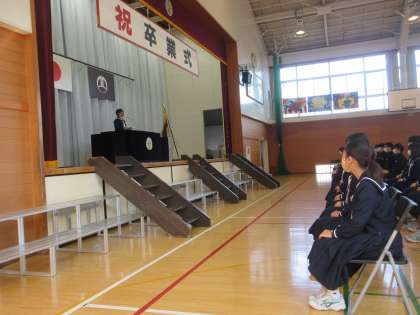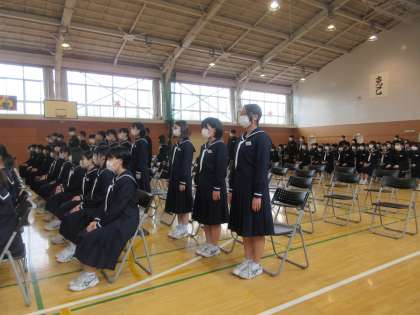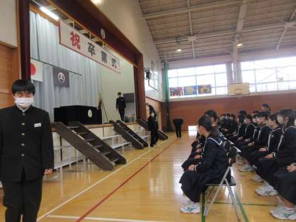 1校時、3年生と在校生のお別れの儀式「春霞式」が行われました。厳粛な雰囲気のなか、卒業生は西中生としての姿を後輩に引き継ぐことができました。在校生は、卒業生の思いを受け止め、西中を受け継ぐ意識を高められたことと思います。