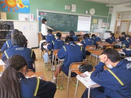 3月14日(火)授業の様子(1年3組社会) 公開日 2023/03/14 更新日 2023/03/14 今日の西中 室町時代の村の自治のしくみや民衆の自立に向けた行動の在り方について考えました。各地で起こった一揆の目的や結果について整理しながら理解を深めています。