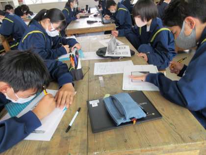 3月16日(木)授業の様子(2年2組美術) 公開日 2023/03/16 更新日 2023/03/16 今日の西中 切り絵の制作が進んでいます。下絵が書き終わった人からその裏に黒い紙を貼り、切る工程に入っています。
