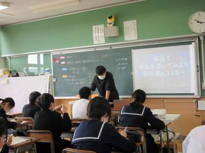 3月16日(木)授業の様子(1年1組英語) 公開日 2023/03/16 更新日 2023/03/16 今日の西中 今日のめあては「英語で日記を書いてみよう」です。教科書の文章を参考にして、昨日どんなことをしたか、その感想も含めて英語で文を作ってみました。