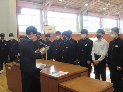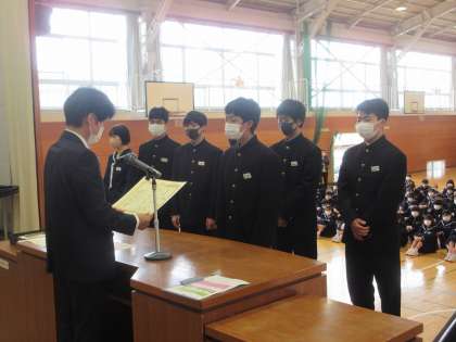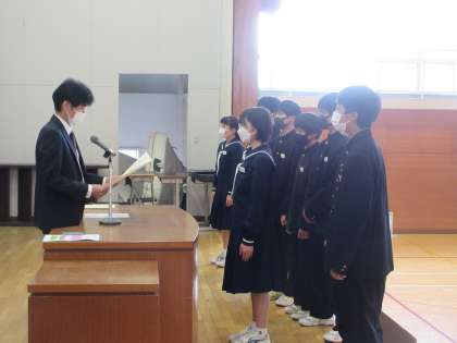 3月24日(金)表彰 公開日 2023/03/24 更新日 2023/03/24 今日の西中 今年度最後の表彰です。県読書感想画コンクール、善意の会標語コンクール、善意の会善行者、東国文化自由研究コンクール、N2CUP(男子バレー)の表彰を行いました。