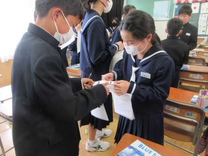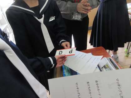 4月13日(木)授業の様子(1年3組 英語) 公開日 2023/04/13 更新日 2023/04/13 今日の西中 初めての英語の授業でした。コミュニケーション活動として、アルファベットマッチングゲームに挑戦しました。自己紹介をし、同じアルファベットのカードを持っている子を探します。