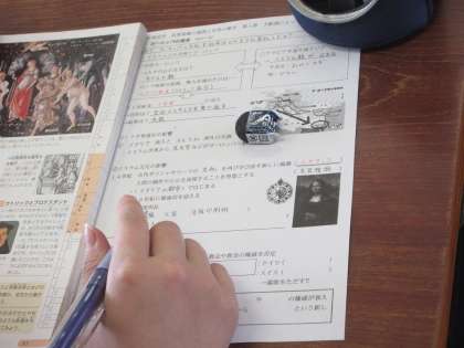 イスラムとの交流により、ヨーロッパの文化や社会がどのように変化していったか学んでいます。羅針盤や活版印刷術が発明される前の様子を聞き、生徒は驚いていました。